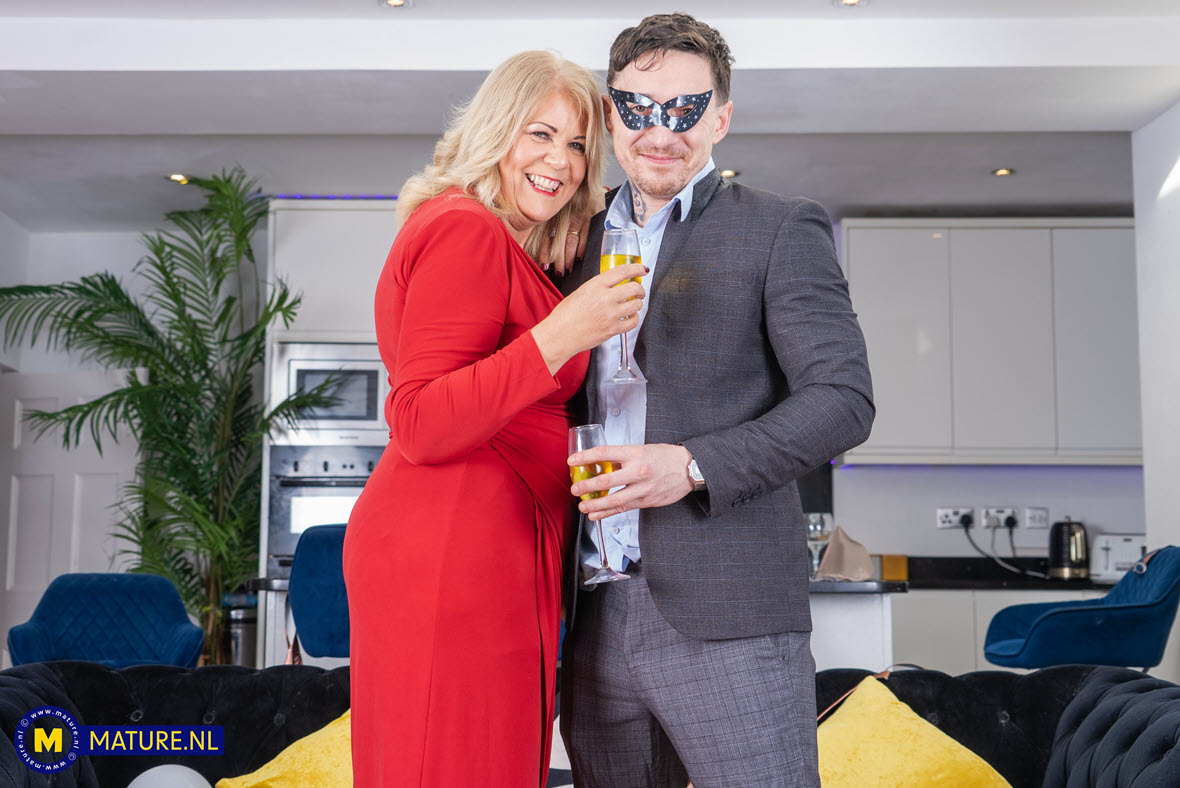 Curvy 61 year old MILF Cassandra is spending new years night with her son's horny best friend.
